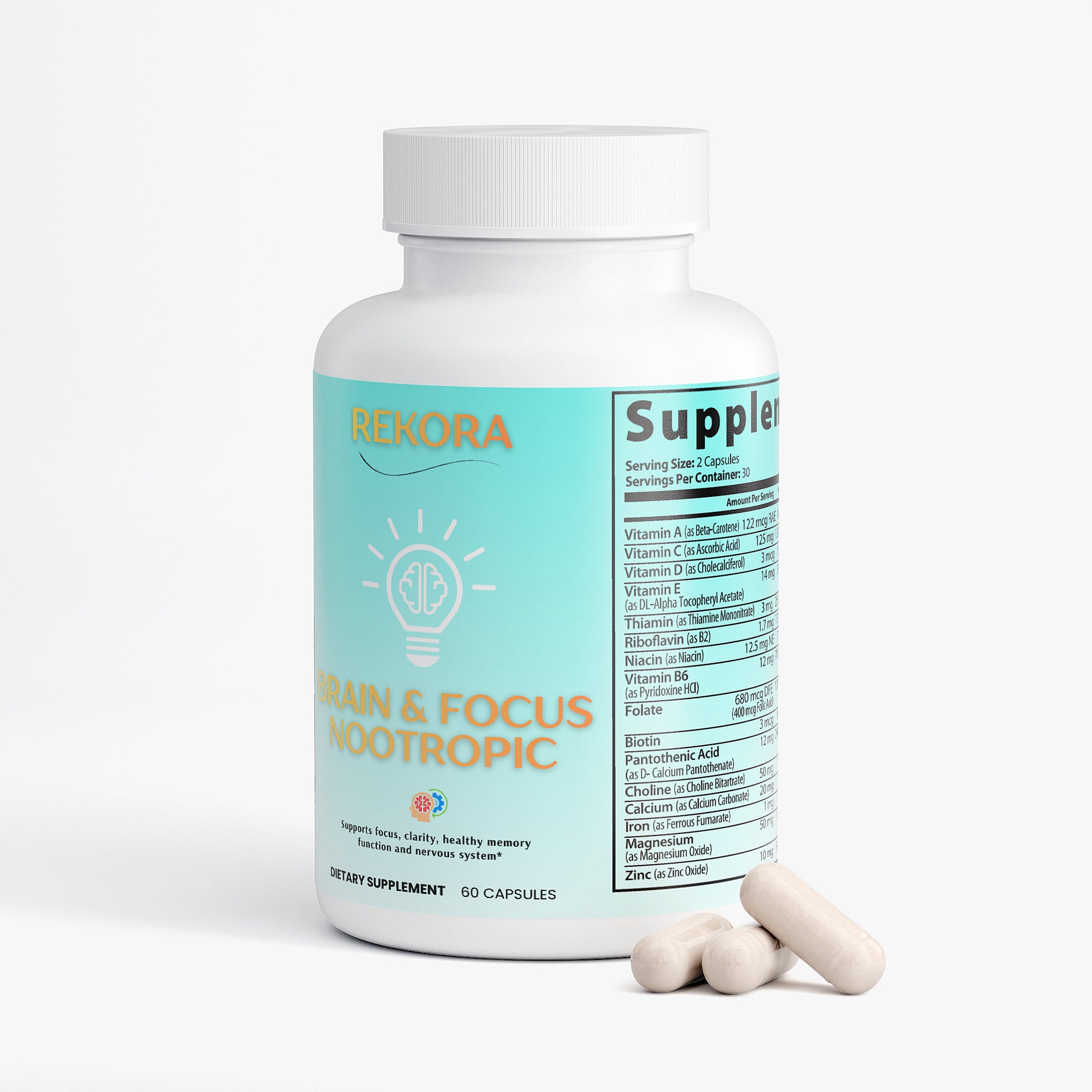B-vitamins, Choline, and DHA are key nutrients for maintaining proper nerve function and supporting neurotransmitter health. Antioxidant-containing botanicals like Bacopa, Green Tea Extract, Bilberry, and Grape Seed Extract work together to help protect brain cells from oxidative stress, promoting long-term cognitive wellness.